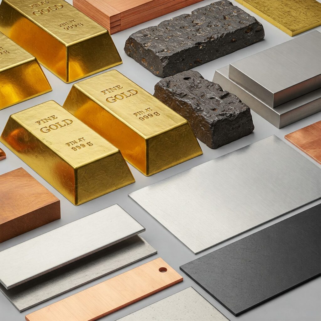 Materiales fundamentales en una amplia variedad de industrias, desde la construcción hasta la electrónica. Los metales que representamos podrían incluir metales preciosos como el oro y la plata, o metales industriales como el cobre, el aluminio y el acero.